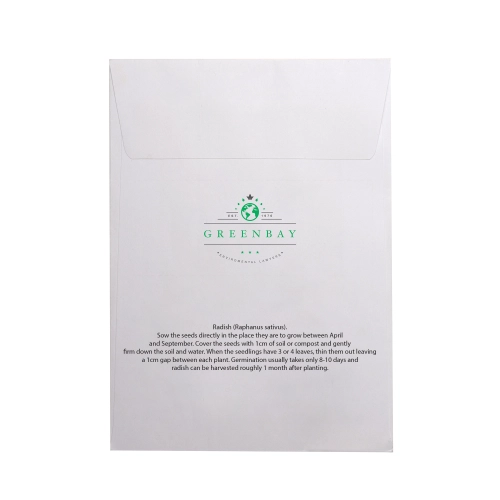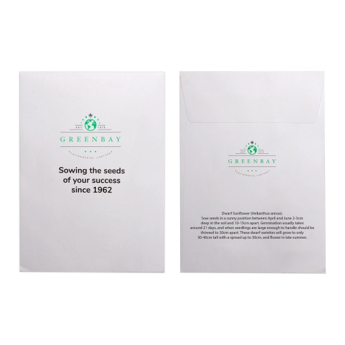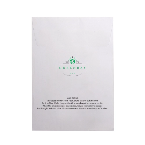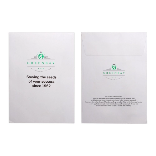 80gsm white 89 x 124mm paper pocket envelope with a generous full colour print area for your brand. Each envelope contains a standard inner pack of seeds with a wide variety to choose from.